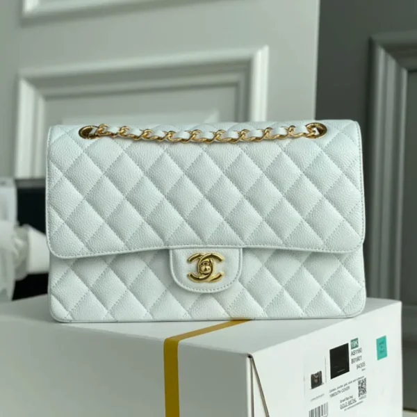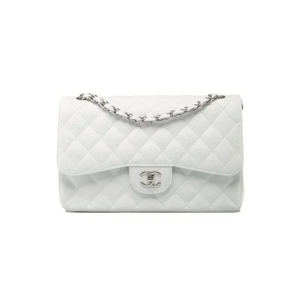 CHANEL CLASSIC HANDBAG Grained Calfskin & Silver Metal
