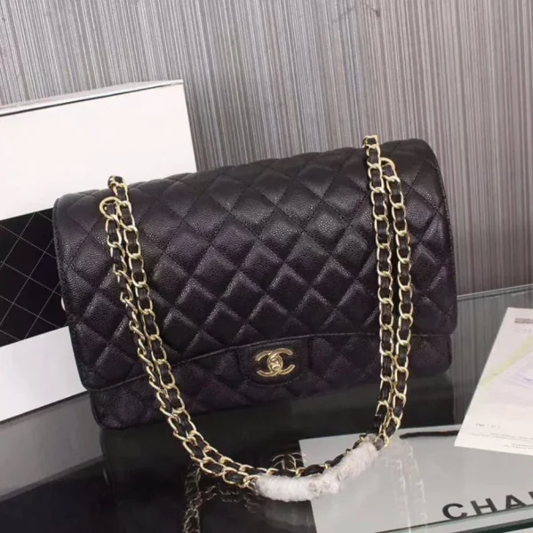 CHANEL Classic Maxi Handbag GRAINED CALFSKIN & GOLD METAL
