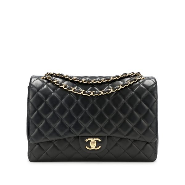CHANEL Classic Maxi Handbag LAMBSKIN & GOLD METAL