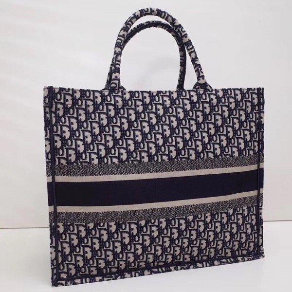 CHRISTIAN DIOR Canvas Embroidered Large Around The World Book Tote Blue