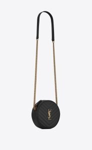 SAINT LAURENT VINYLE ROUND QUILTED GRAIN LEATHER ROUND BAG