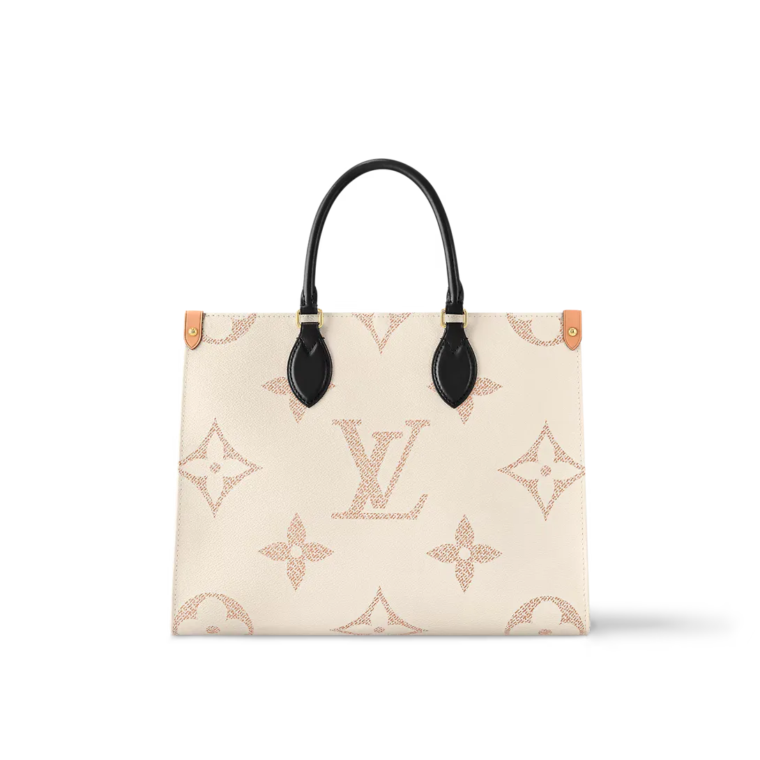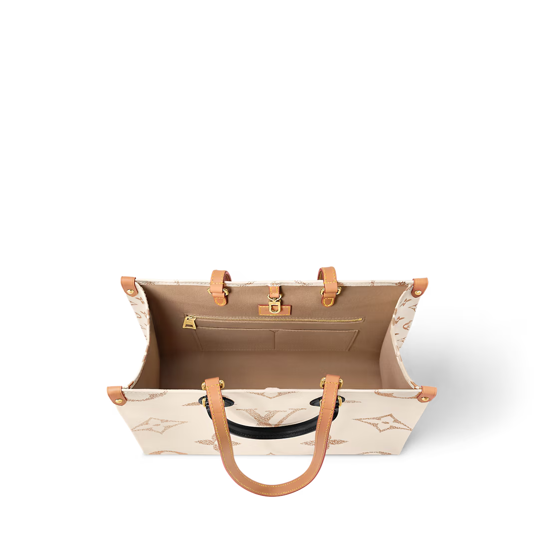 From the Cruise 24 collection comes this OnTheGo MM a capacious tote crafted from new Monogram Dune canvas. The sand-inspired colorway gives a modern effortless air to this versatile OnTheGo which features two top handles in contrasting black leather and twin shoulder straps made from the Maison’s heritage natural cowhide. Golden hardware adds a gleaming flourish to the piece.