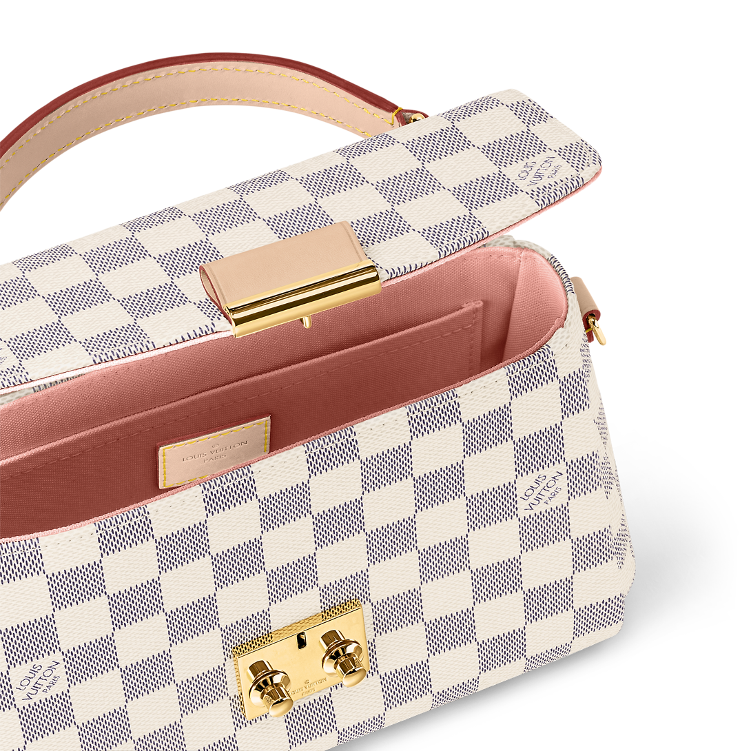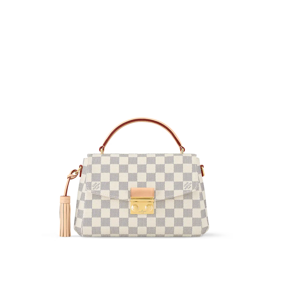 A compact bag with modern lines the Croisette in summery Damier Azur canvas boasts sophisticated details (note the signature S-lock) and a casual-chic allure. The removable leather tassel adds a touch of fun. Sized to fit the essentials plus a long wallet this versatile piece can be hand-carried slung over the shoulder or worn cross-body.