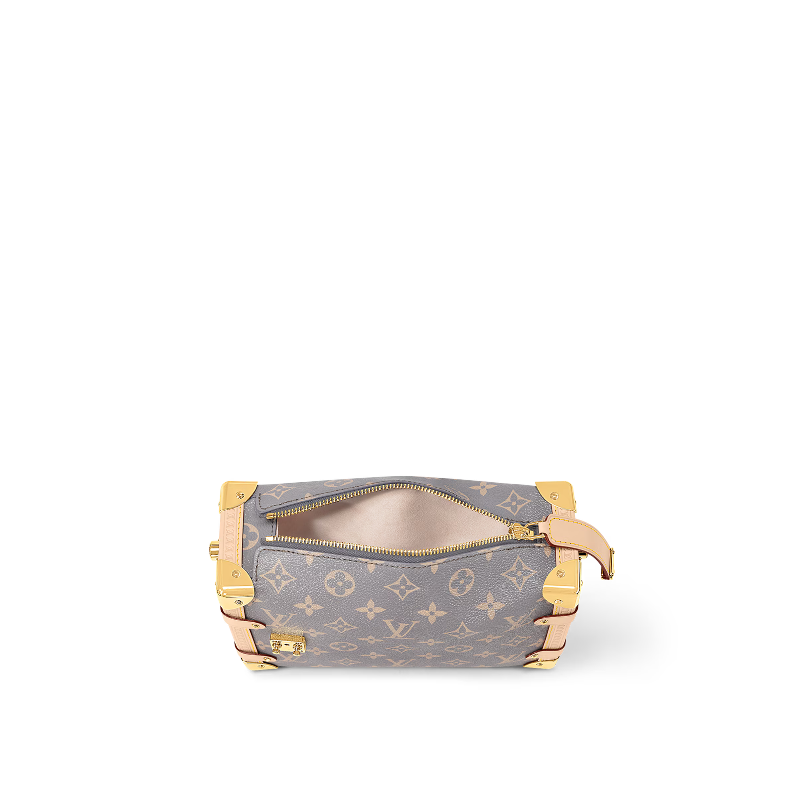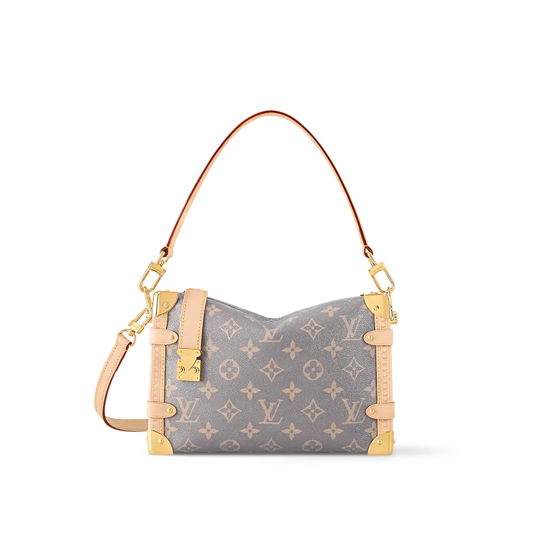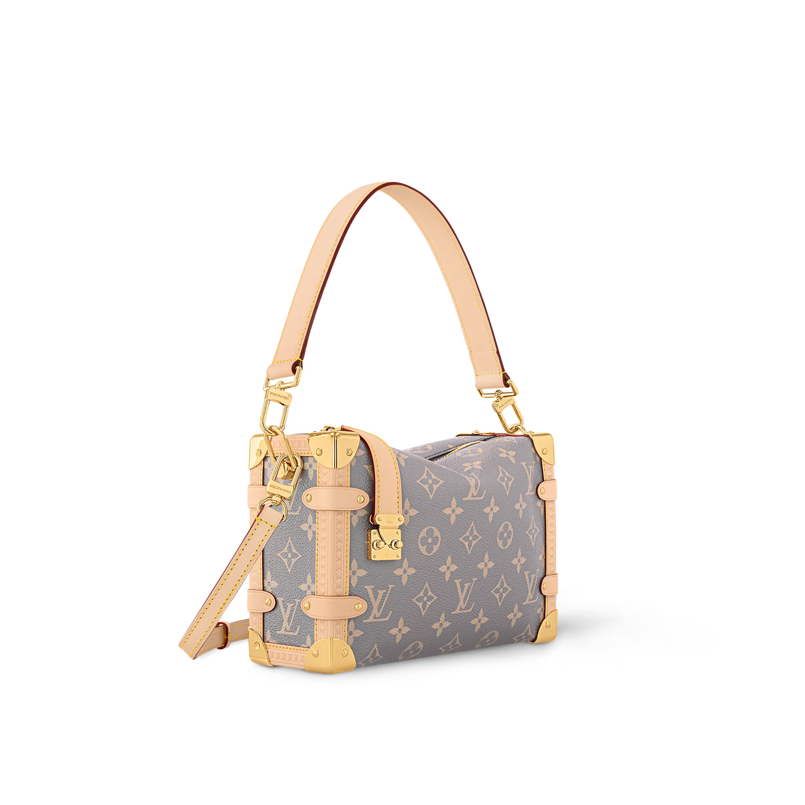 Inspired by the colors of the brand’s vintage trunks this Side Trunk Medium Bag is rendered in an elegant French hue of the iconic Monogram canvas paired with cowhide trims and shiny hardware making it easy to integrate into the season’s ready-to-wear collection. The shoulder strap and top handle are both removable providing a variety of carrying methods.