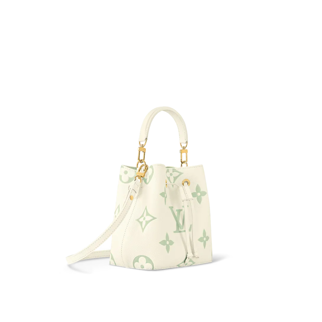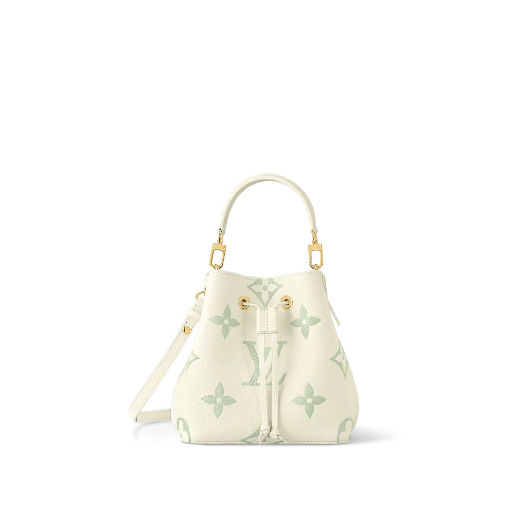 Inspired by colors of early spring the pastel colorway of the Monogram Empreinte leather with the LVs and Monogram Blossoms embossed and printed onto the cowhide bring a delicate feel to this Néonoé BB bucket bag. The interior features matching lining and a central pocket that closes with a press stud.