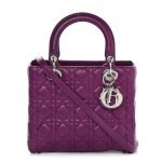 CHRISTIAN DIOR Lambskin Cannage Medium Lady Dior Purple