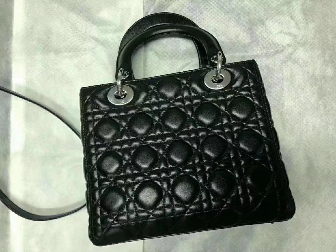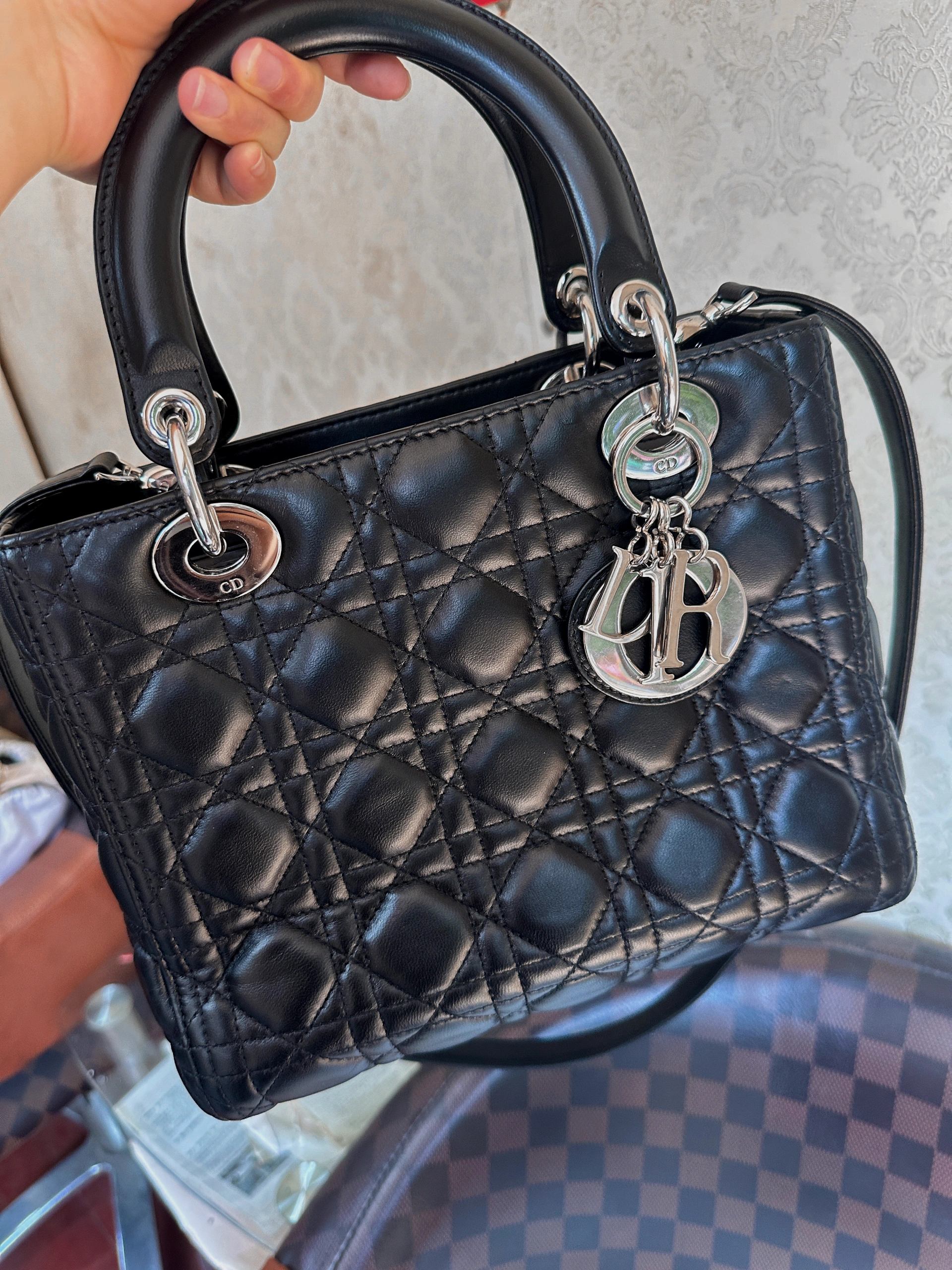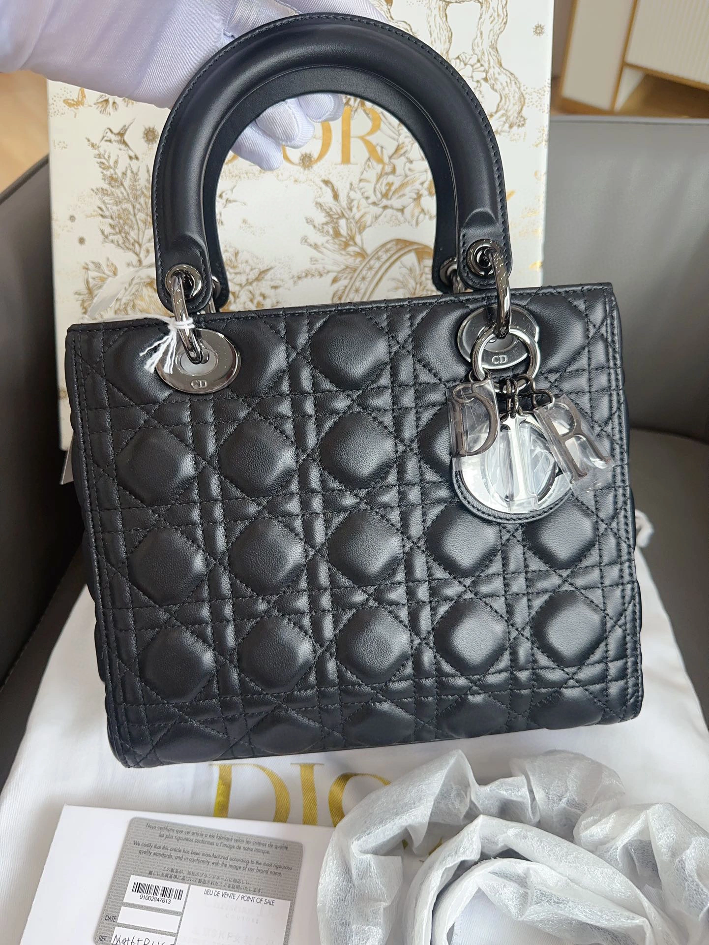 43 reviews for Christian Dior Medium Lady Dior Tote Black Lambskin Ruthenium Hardware