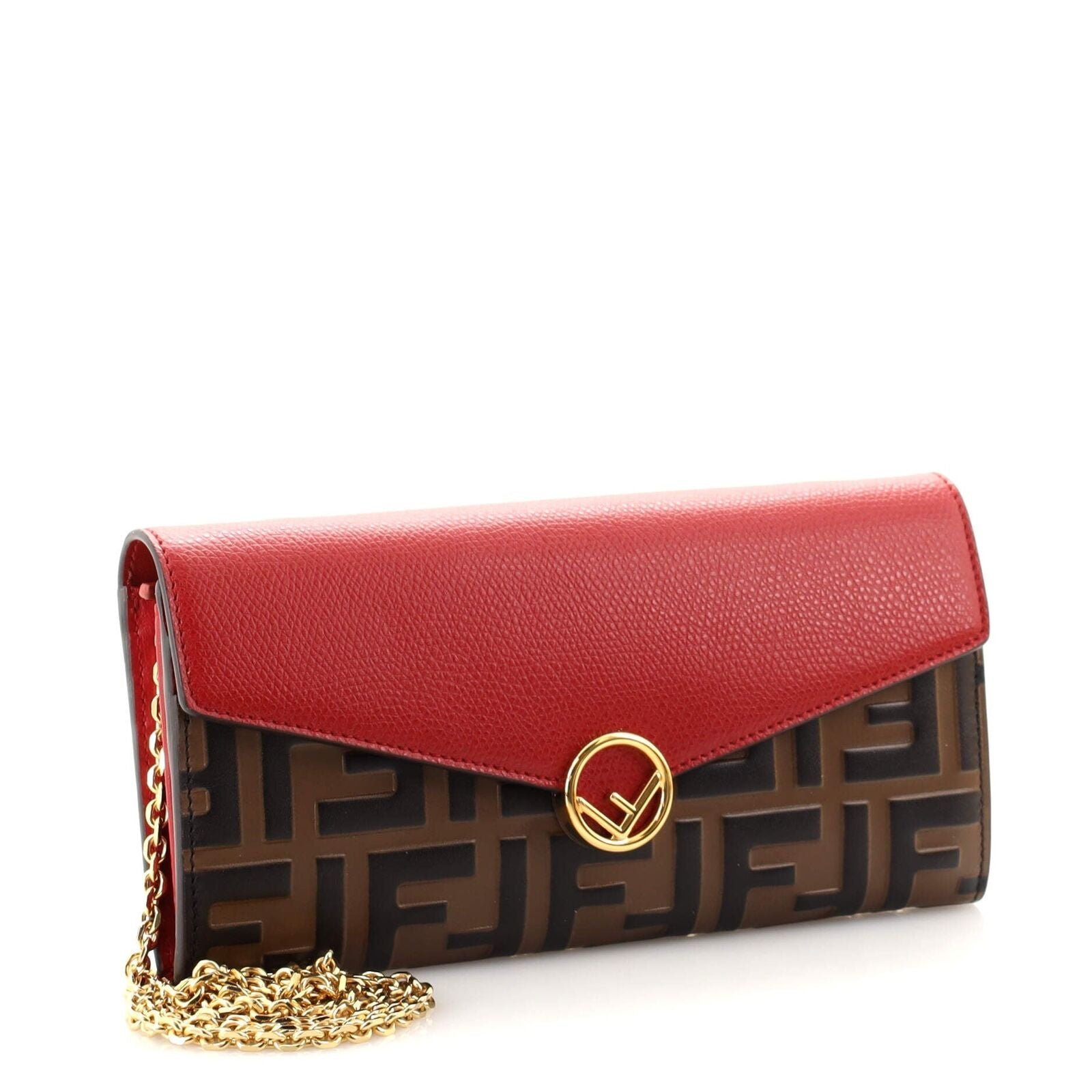 Fendi Continental with Chain in Red Leather