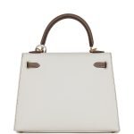 Hermès Special Order (HSS) Kelly Sellier 25 White and Etoupe Epsom Gold Hardware (HANDMADE)