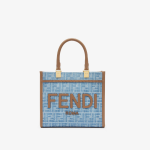 Fendi Sunshine Small Light blue FF denim fabric shopper