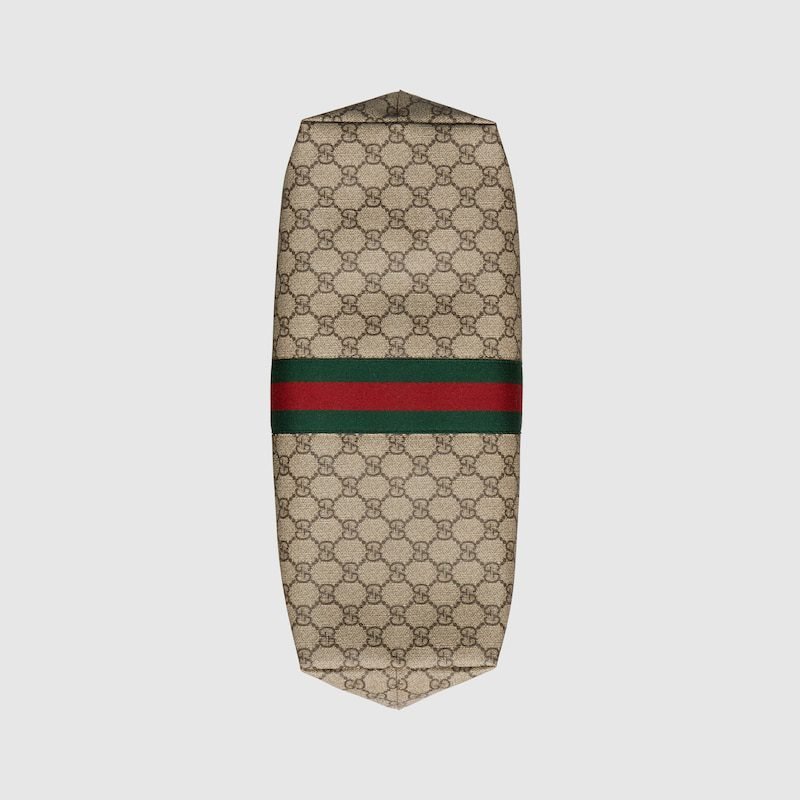 The world of Ophidia continues to evolve with new iterations for the Pre-Fall collection. The top handle bag is made of beige and ebony GG Supreme canvas and has a detachable and adjustable shoulder strap. The House Web stripe and Double G hardware complete the piece.