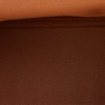 The interior is lined in gold chevre and has one zip pocket with Hermes engraved pull and two open pockets on the opposite side.