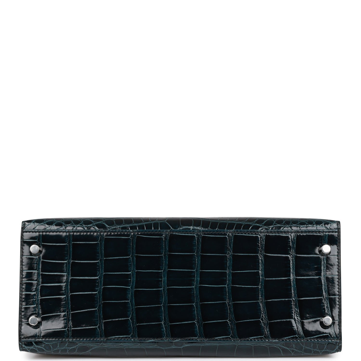 This rare Kelly. in the Sellier style. is of Vert Rousseau. Vert Bosphore and Black shiny and matte Mississippiensis alligator with palladium hardware and features tonal stitching. a front toggle closure. a clochette with lock and two keys and a single rolled handle.