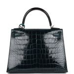 Hermès Kelly Sellier 28 Tri-color Black. Vert Rousseau and Vert Bosphore Shiny and Matte Alligator Palladium Hardware (HANDMADE)