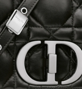 The Dior Caro bag combines modernity with timeless elegance. The design is crafted in black calfskin and is distinguished by its original quilted-effect Macrocannage stitching. The bag features a flap adorned with a ruthenium ‘CD’ twist clasp, inspired by the seal of a Christian Dior perfume bottle. The detachable chain shoulder strap with ‘CD’ signature links allows the large bag to be carried by hand or worn over the shoulder and may be replaced by one of the House’s wide embroidered straps for day or evening attire.