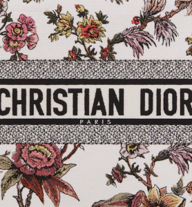 The Dior Book Tote is an original creation introduced by Maria Grazia Chiuri, Dior’s Creative Director, and has become a staple of the Dior aesthetic. Designed to hold all the daily essentials, it is fully embroidered with the white multicolor Dior Jardin Botanique motif and presents a romantic floral pattern inspired by Mr. Dior’s beloved Granville gardens. Adorned with the ‘CHRISTIAN DIOR PARIS’ signature on the front, the medium tote exemplifies the House’s signature savoir-faire and may be carried by hand or worn over the shoulder.