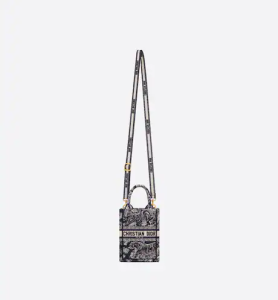 This season, Maria Grazia Chiuri’s phone bag is enriching the iconic Dior Book Tote line. A perfect example of the House’s savoir-faire, the style is entirely embroidered with the blue Toile de Jouy Reverse motif, a play on the hallmark House pattern using reversed colors. Enhanced by the ‘CHRISTIAN DIOR PARIS’ signature on the front. The miniature bag will accommodate a phone as well as small daily essentials. Completed by an adjustable and removable embroidered shoulder strap, the modern accessory can be worn in the hand, on the shoulder or crossbody.